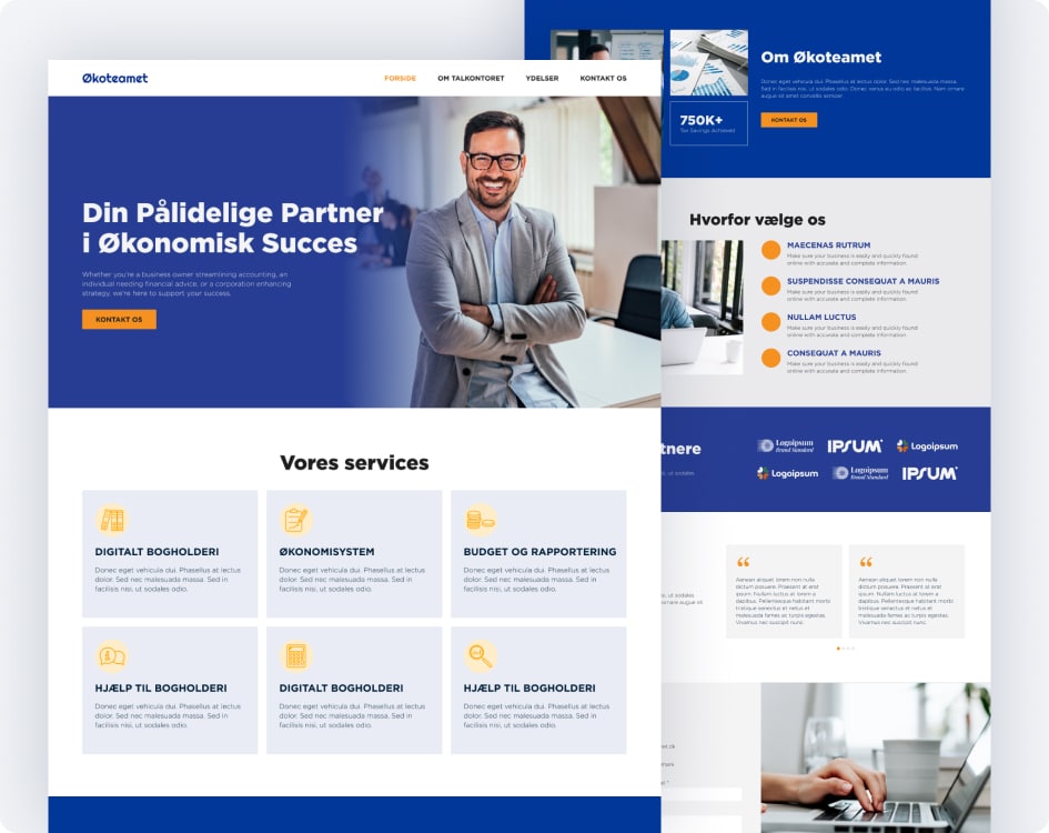 Designforslaget fungerer som en visuel retningslinje for din hjemmesides stil. Er du ikke helt tilfreds med det første forslag, arbejder vi blot videre med det baseret på din feedback, indtil du er glad for resultatet og ønsker at vi implementerer det — eller du vælger at gå en anden vej.